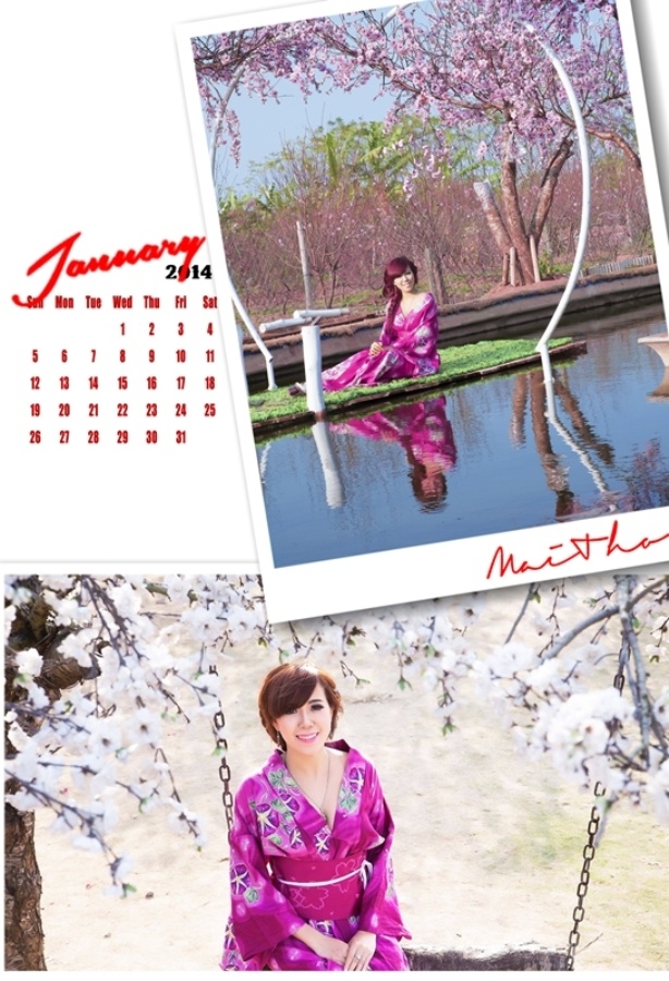 | Trong tháng 1, Mai Thỏ là thiếu nữ Nhật Bản e ấp bên hoa đào. |