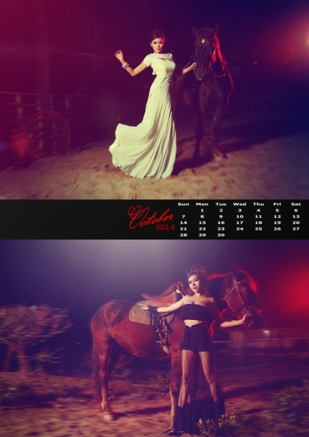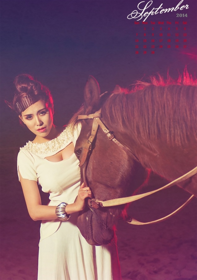 | Tháng 9, tháng 10, Mai Thỏ tạo dáng quyến rũ bên ngựa. |