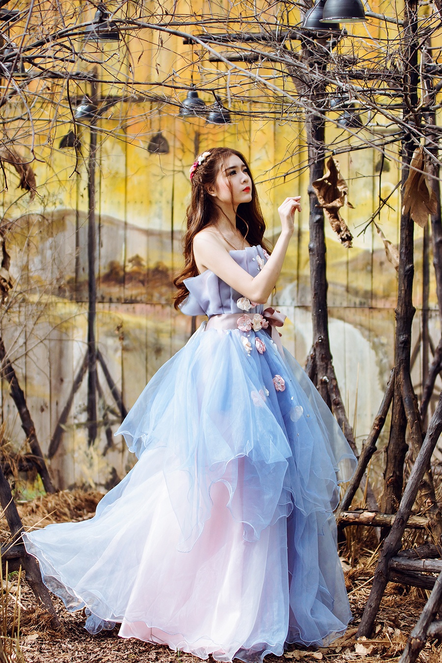 | Trang phục công chúa phù hợp với phong cách nữ tính, dễ thương còn được nhấn nhá họa tiết 3D ở thân áo. |