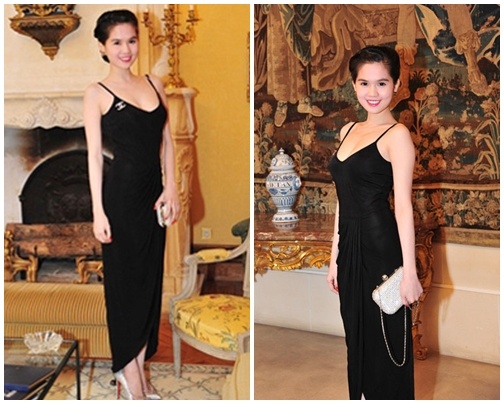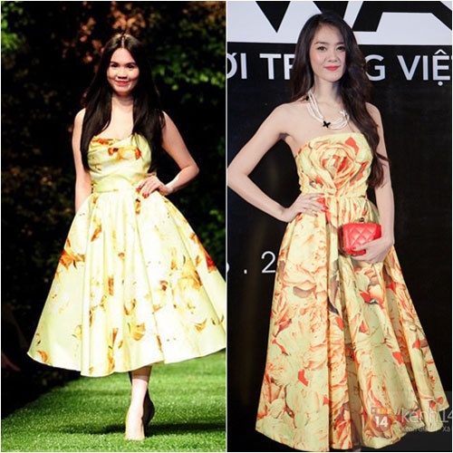 Tuy nhiên, chiếc váy mà người đẹp Linh Chi mặc đã được Ngọc Trinh sử dụng từ trước đó rất lâu, cô diện thiết kế giống y đúc khi tham dự sự kiện, cả hai khác nhau ở cách mix phụ kiện. Ngọc Trinh tinh tế hơn khi biết tạo điểm nhấn phần ngực áo bằng chiếc huy hiệu Chanel cài rất nổi bật. Diện trang phục giống nhau nhưng với cách chọn phụ kiện, tông trang điểm và mái tóc búi nhẹ phía sau, Ngọc Trinh được đánh giá là đẹp mắt hơn so với á hậu ảnh.
