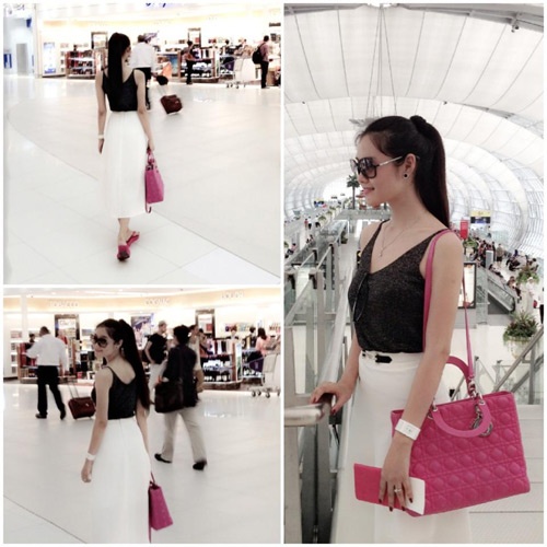 Phong cách thời trang sân bay của Linh Chi dễ khiến người ta nhầm lẫn cô là Ngọc Trinh.