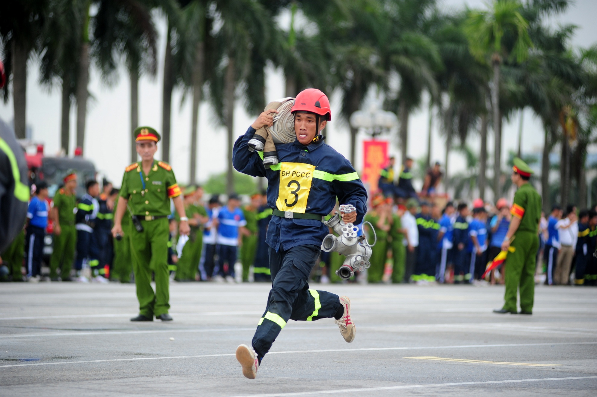 Hội thi thể thao nghiệp vụ chữa cháy và cứu nạn, cứu hộ toàn quốc vừa diễn ra sáng 1/8 tại Quảng trường Mỹ Đình (Hà Nội).
