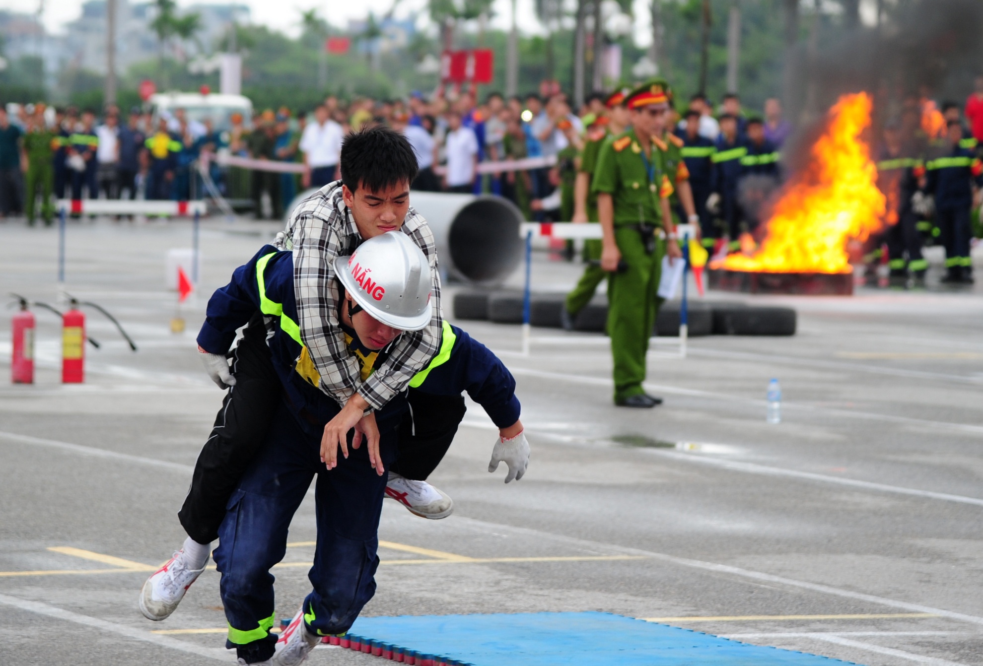 | Tình huống giả định cứu giúp và cõng nạn nhân chạy khỏi nơi hỏa hoạn. |