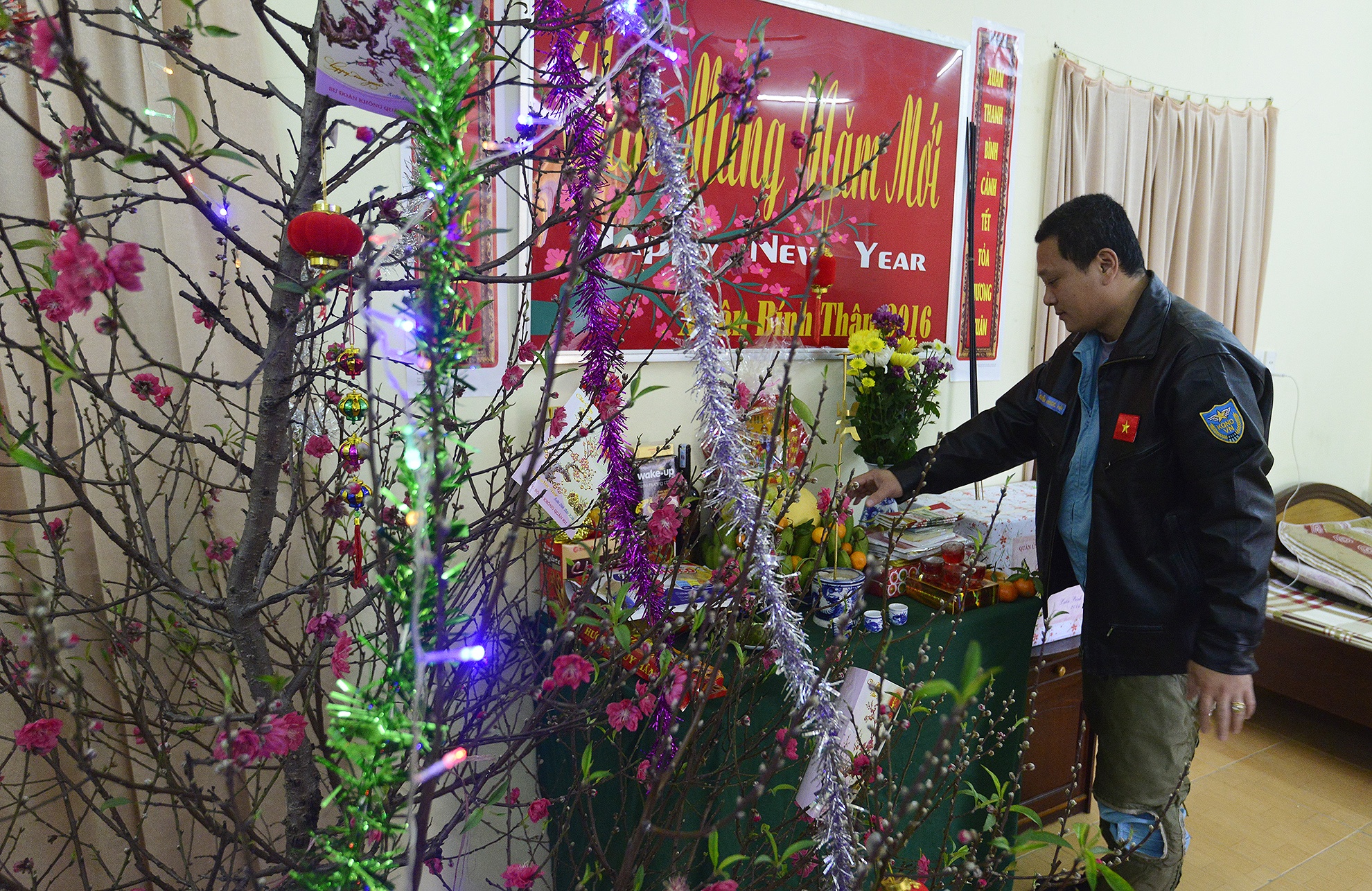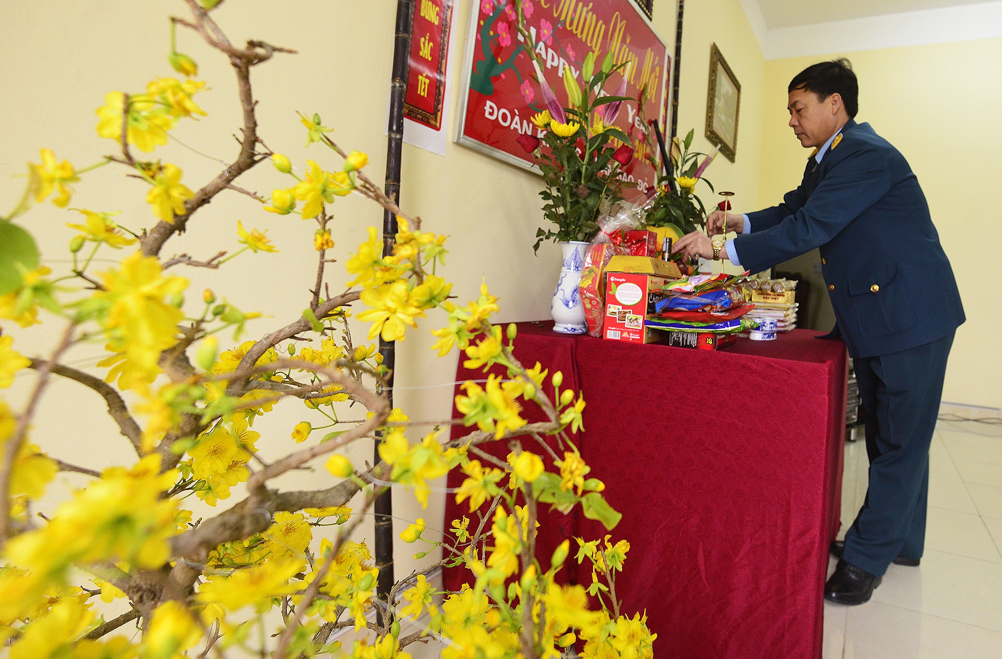 Trung tá Lê Văn Uy - Chính uỷ Trung đoàn cho biết, từ ngày 26 tháng Chạp, nhiều đơn vị trong trung đoàn bắt đầu sắp mâm ngũ quả, trang trí đào quất để chào đón năm mới.