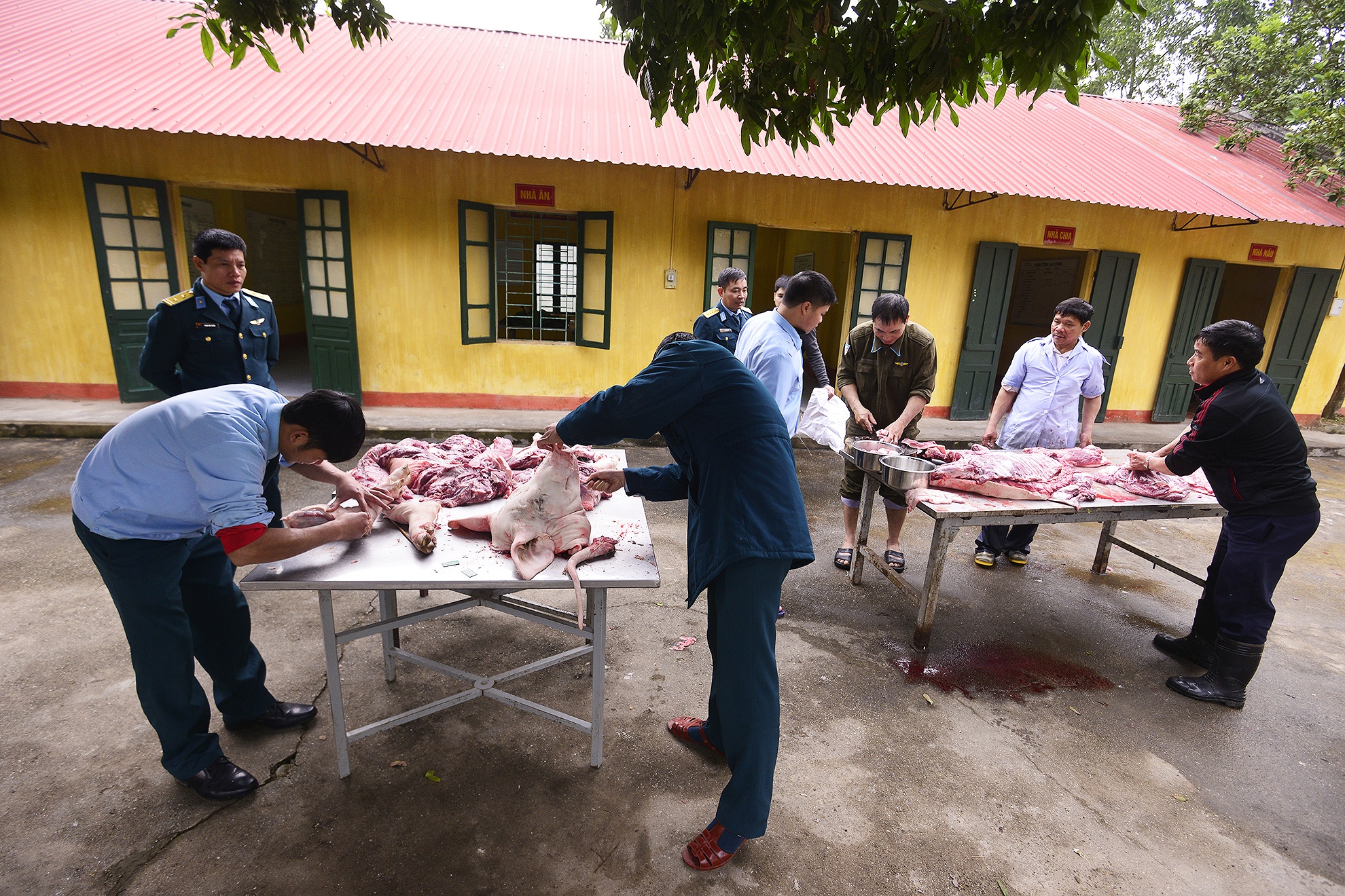 | 4 ngày trước năm mới, các chiến sĩ tại đơn vị tất bật mổ lợn chuẩn bị đón Tết Bính Thân. |