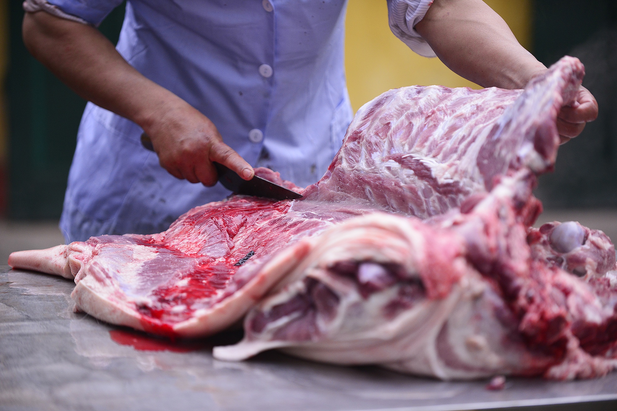 | Lợn nặng từ 100 kg đến 150 kg đều là "thịt sạch", do các đơn vị tự nuôi được mổ để làm giò, gói bánh chưng. |