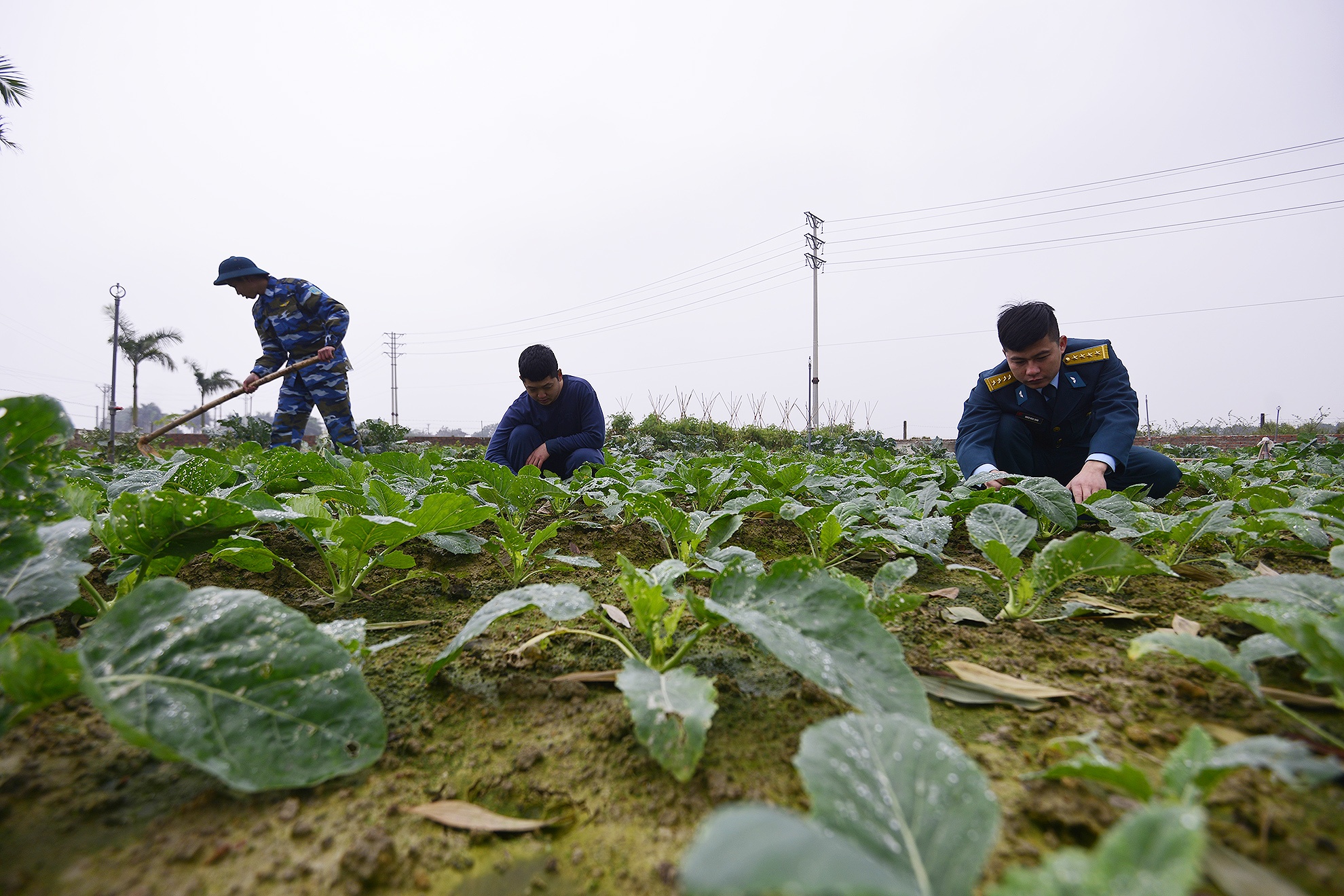 | Nhiều luống rau xanh tươi tại các tiểu đoàn được cán bộ, chiến sĩ hái để phục vụ Tết. |