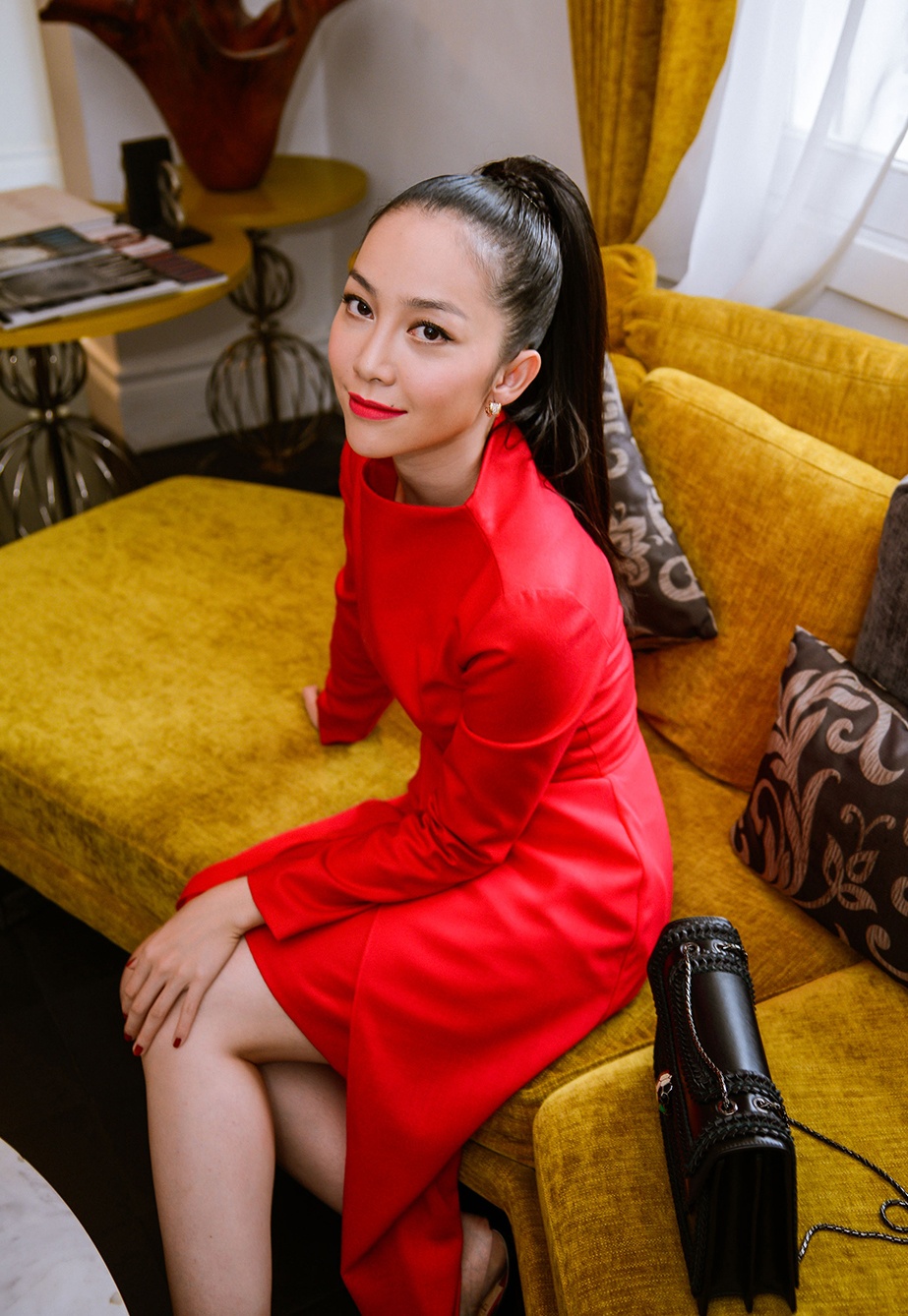 Linh Nga diện đầm đỏ kiểu cách khoe dáng chuẩn