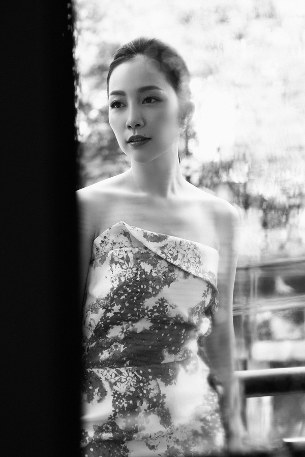 | Thiết kế kiểu dáng lệch vai rất phù hợp với vẻ đẹp cổ điển, nữ tính của Linh Nga. |