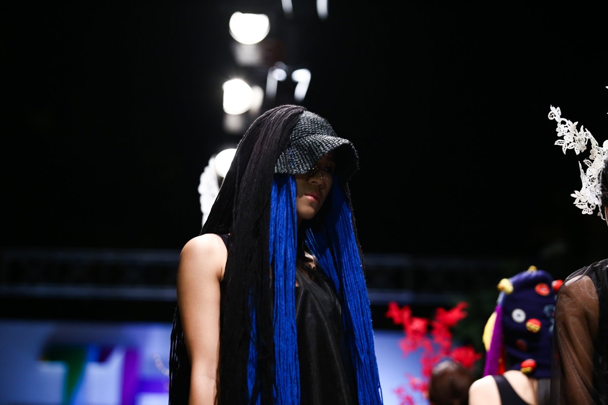 Diễn viên múa Linh Nga đảm nhận vai trò vedette xuất hiện cuối màn cùng người sáng tạo nên những chiếc nón độc đáo.