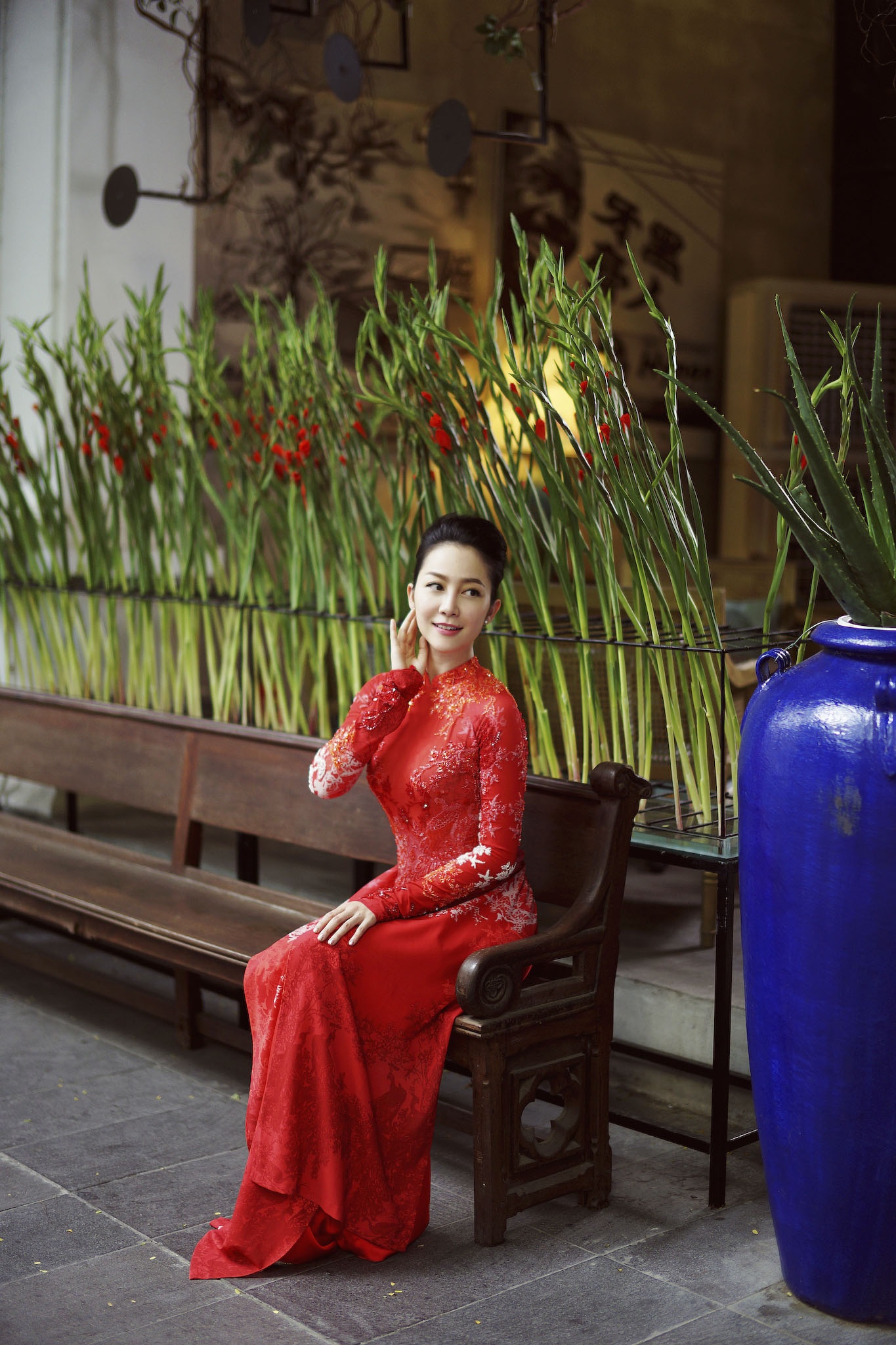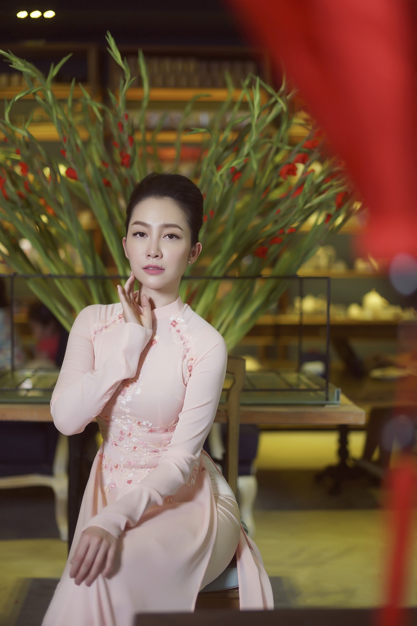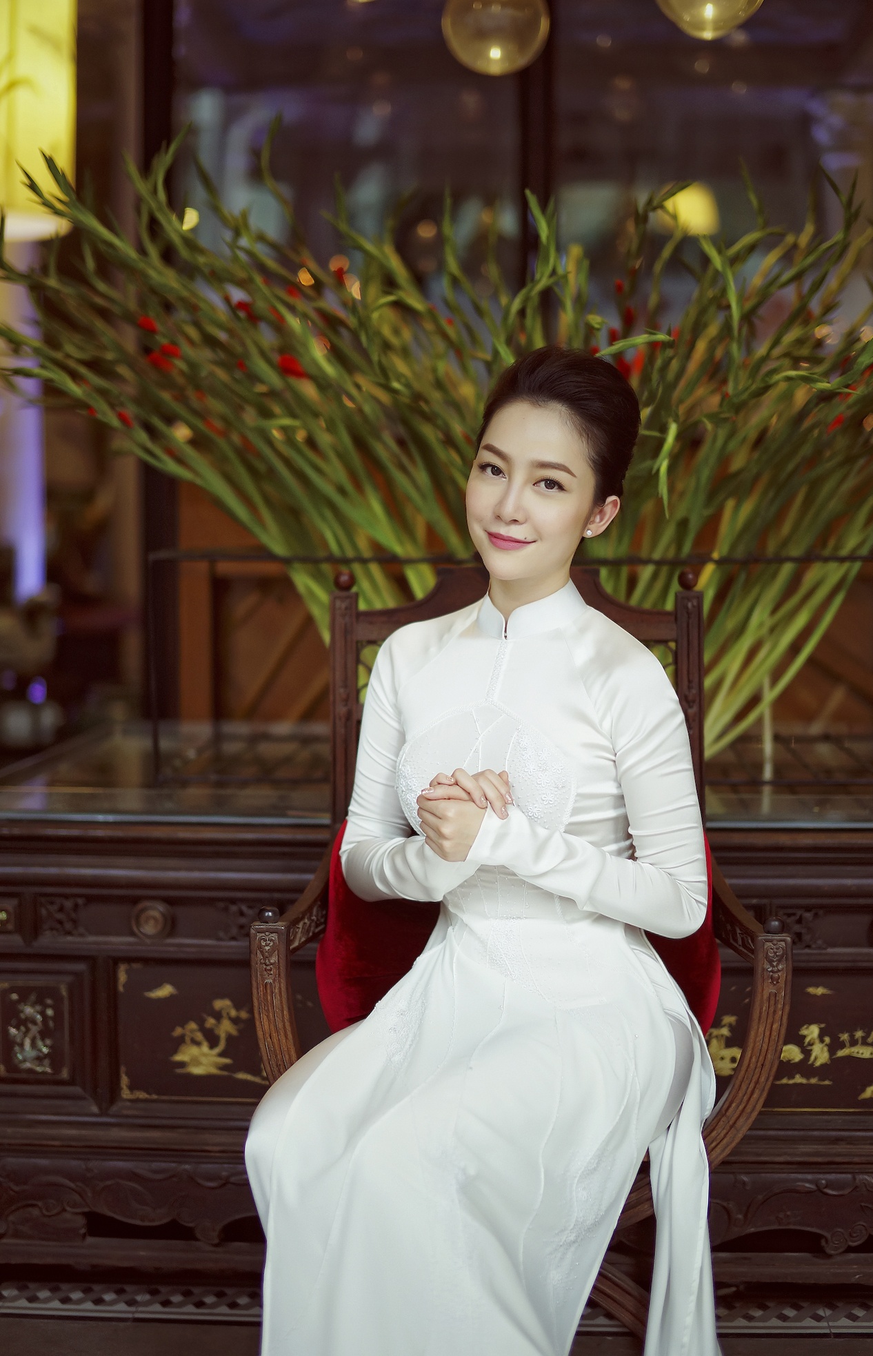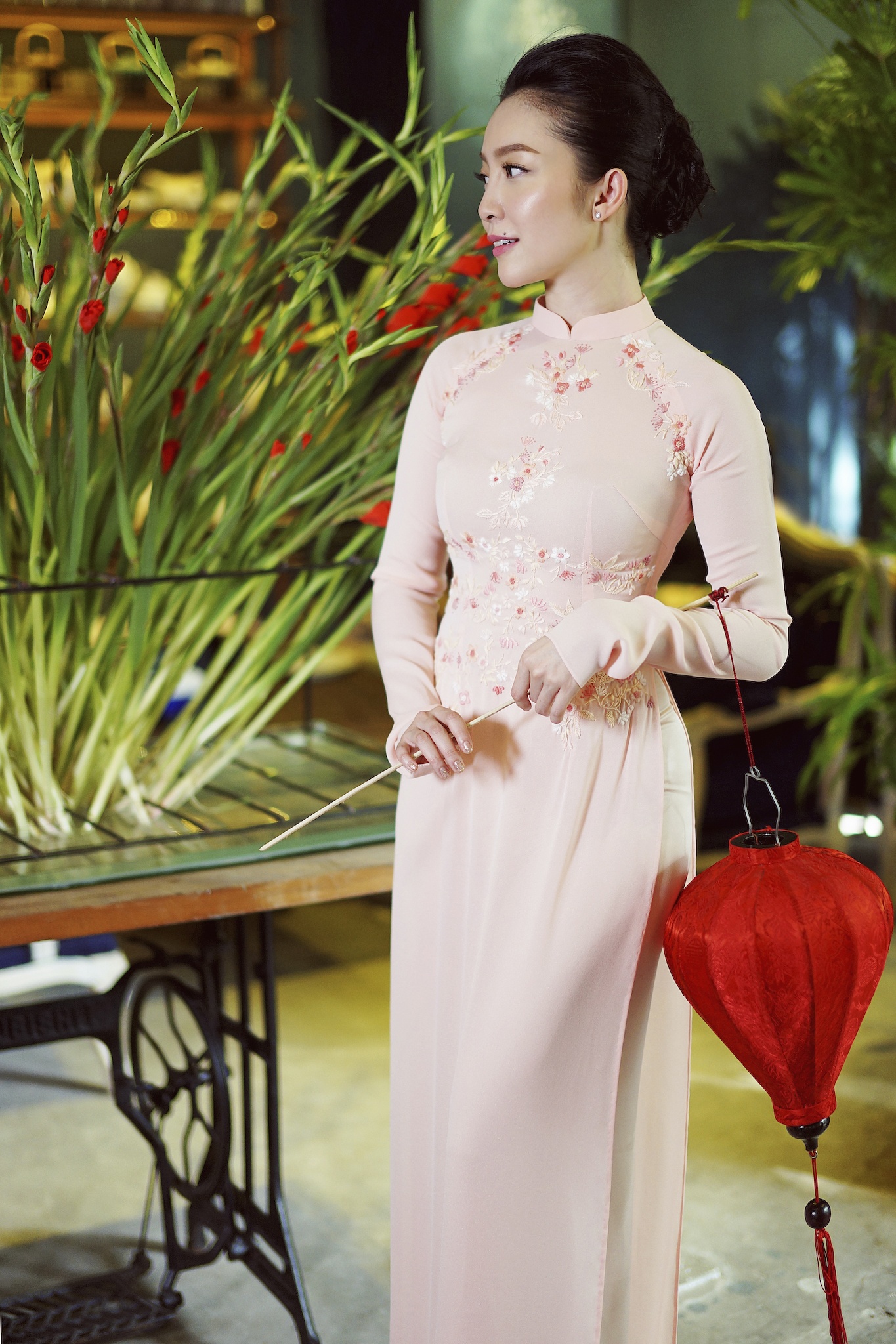 Giữa bối cảnh cổ điển, lãng mạn, bà mẹ một con nổi bật với phong thái nhẹ nhàng, thanh lịch.