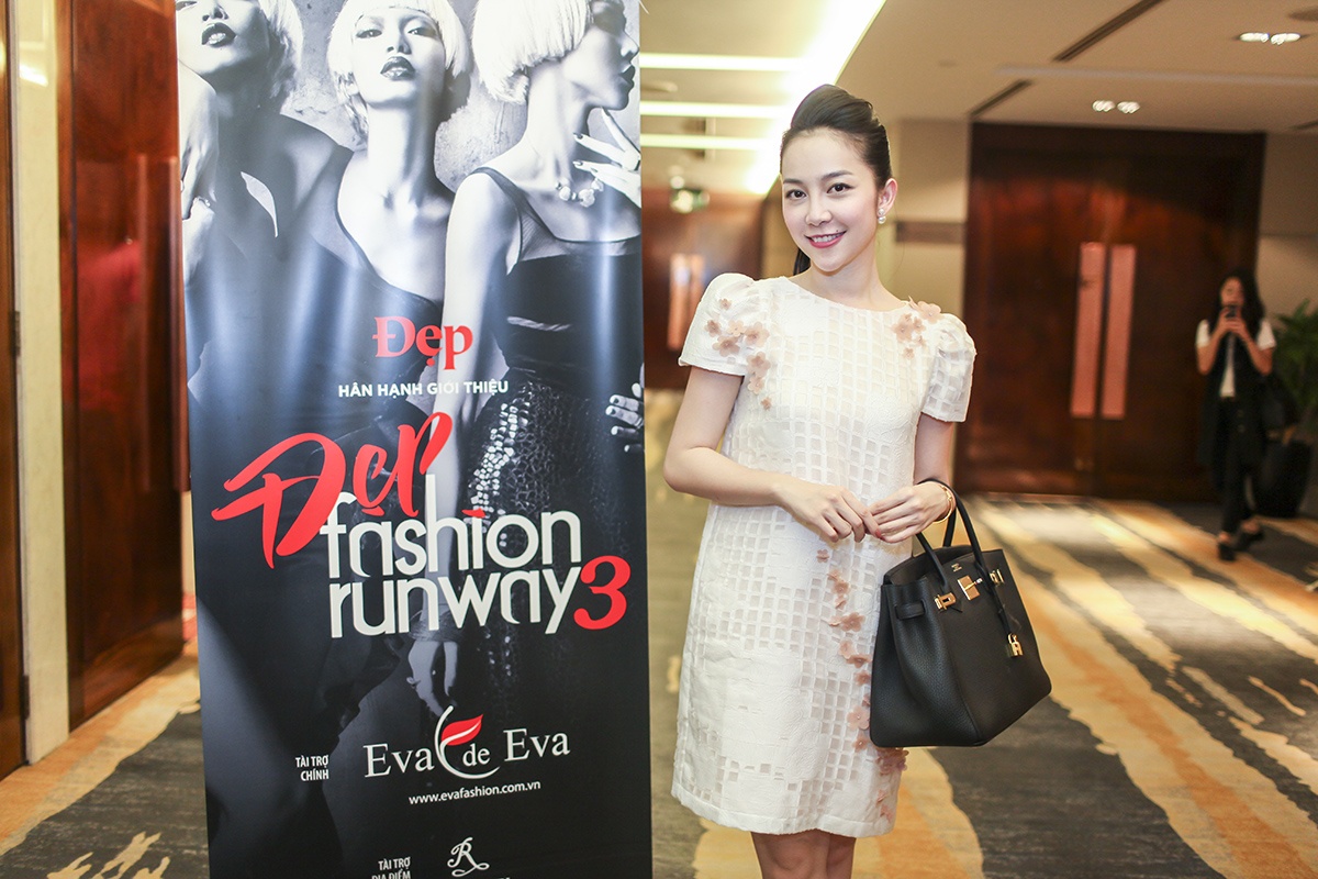 Chim công làng múanổi bật với phong cách thanh lịch tại buổi họp báo Đẹp Fashion Runway 3 ngày 10/9 do tạp chí Đẹp tổ chức với sự đồng hành của thương hiệu Eva de Eva.