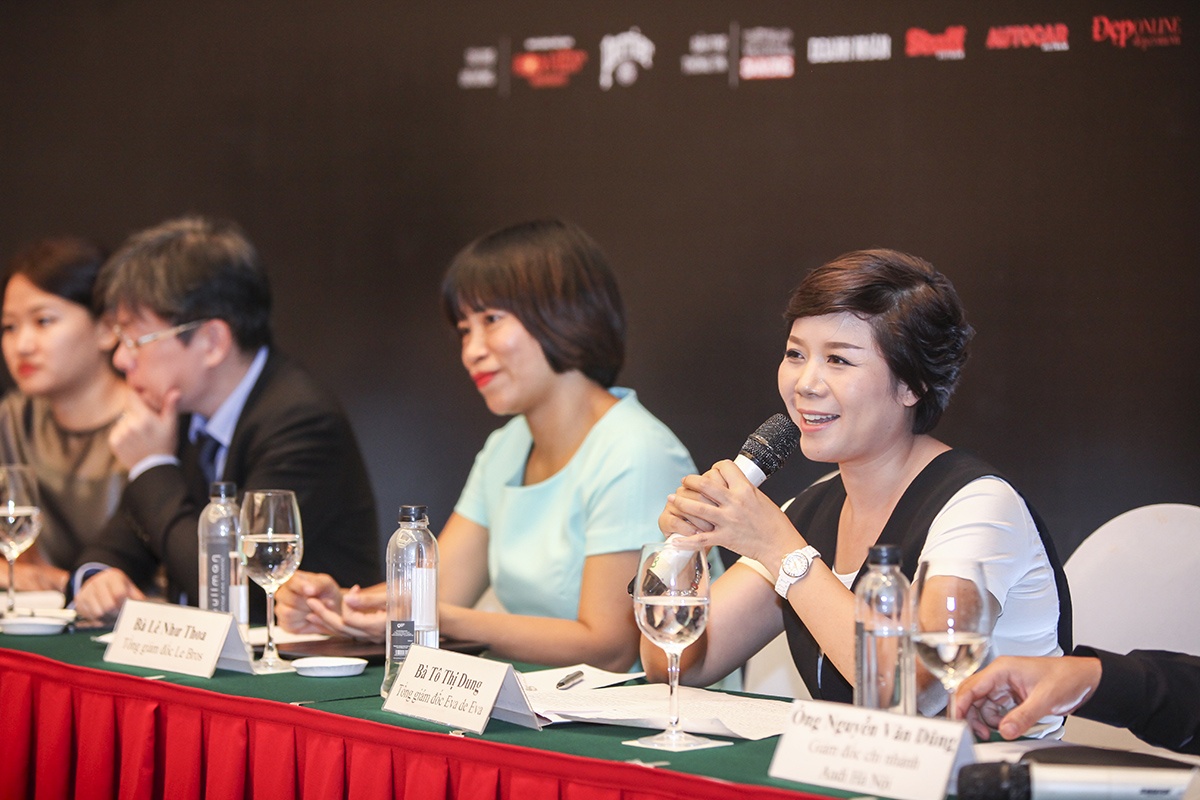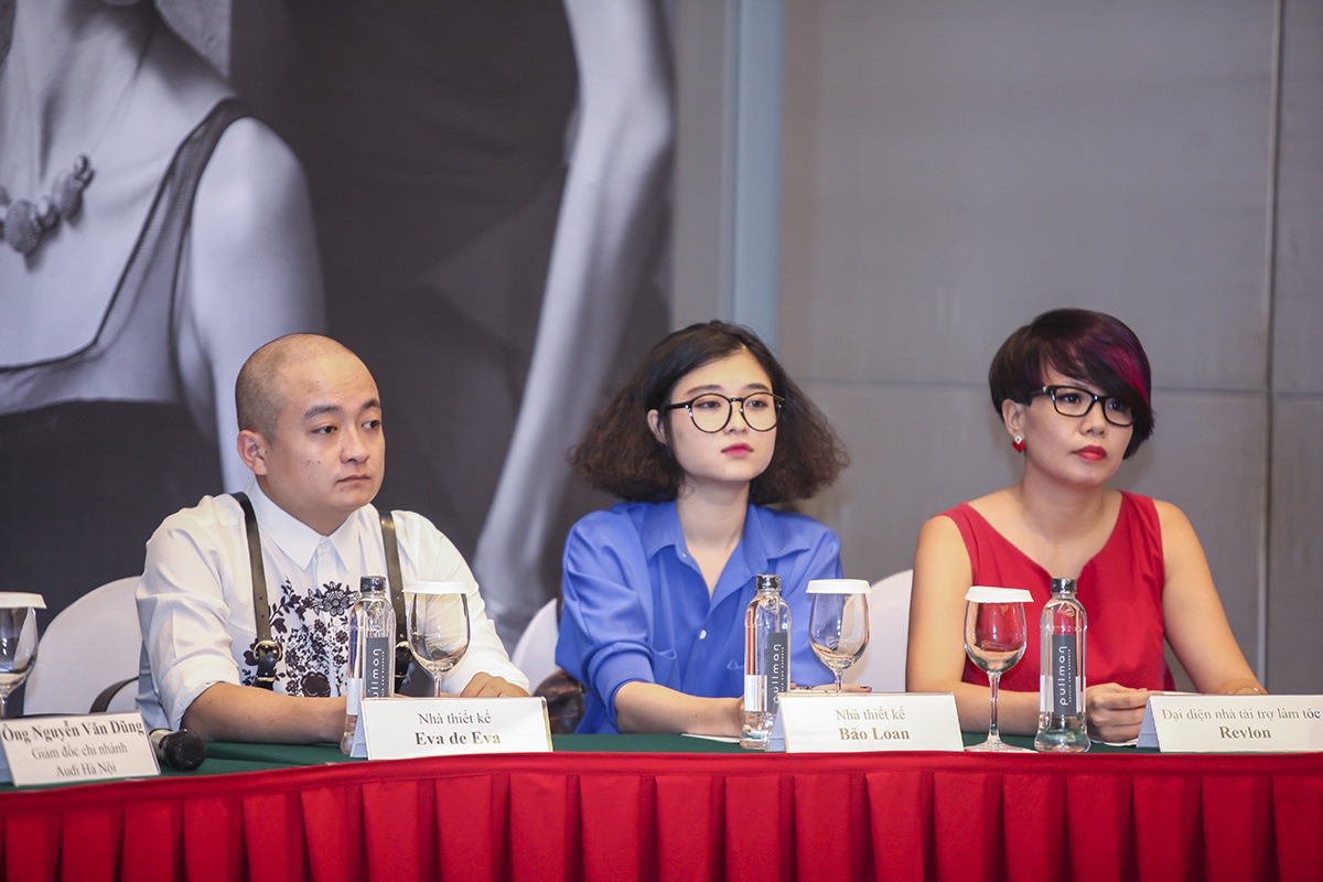Tham gia họp báo có sự góp mặt của đại diện nhà tài trợ Audi, bà Lê Như Thoa - Giám đốc sản xuất Lebros, NTK Eva de Eva Cao Minh Tiến, diễn viên Linh Nga và hai người bạn (bà Tô Thị Dung - Tổng giám đốc Eva de Eva, ông Lê Quốc Vinh - Tổng giám đốc tập đoàn Lê Bros), DJ Trí Minh (từ phải qua trái).