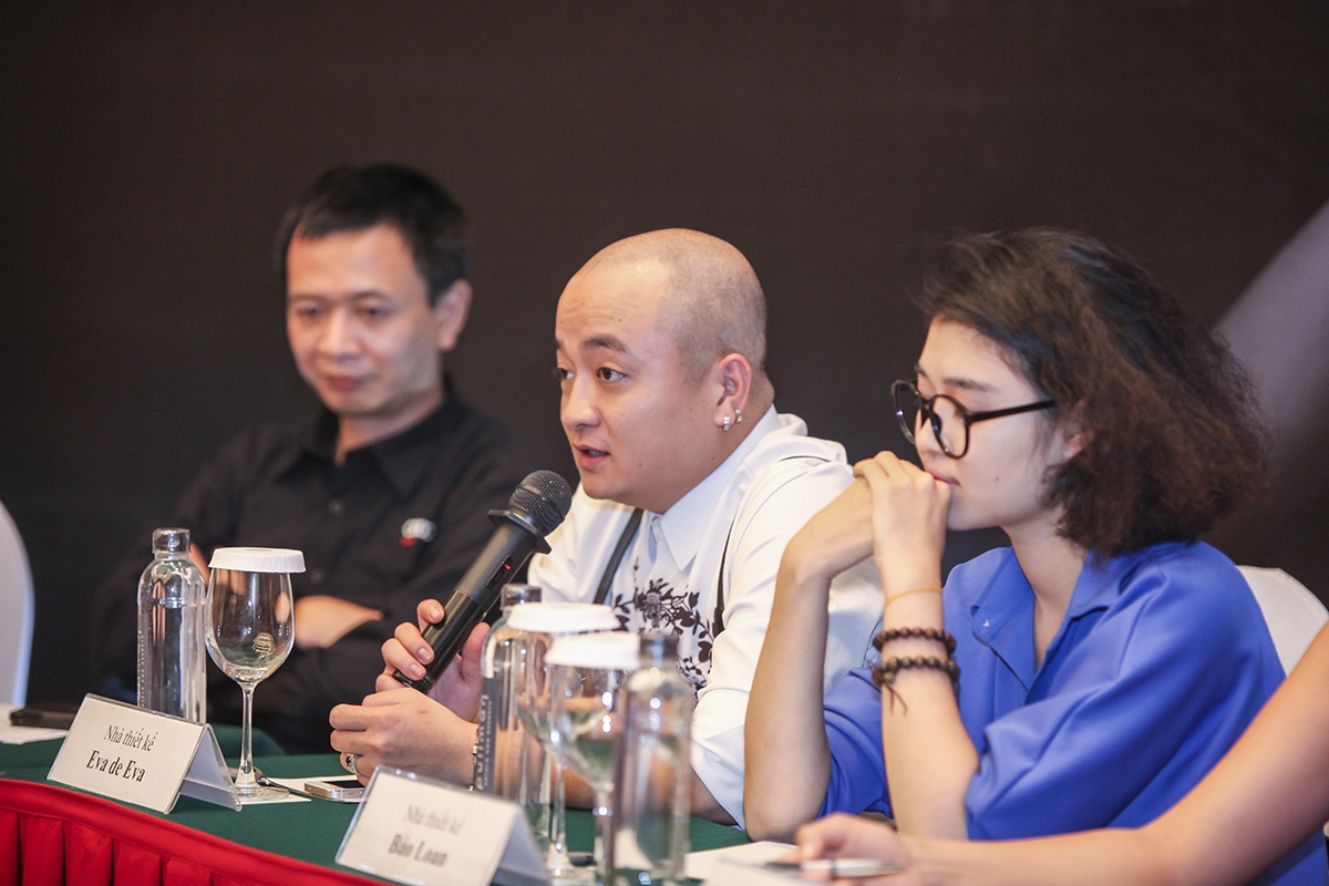 Đại diện NTK trả lời các câu hỏi liên quan đến xu hướng, và ý tưởng chủ đề của BST Eva de Eva trong show diễn.