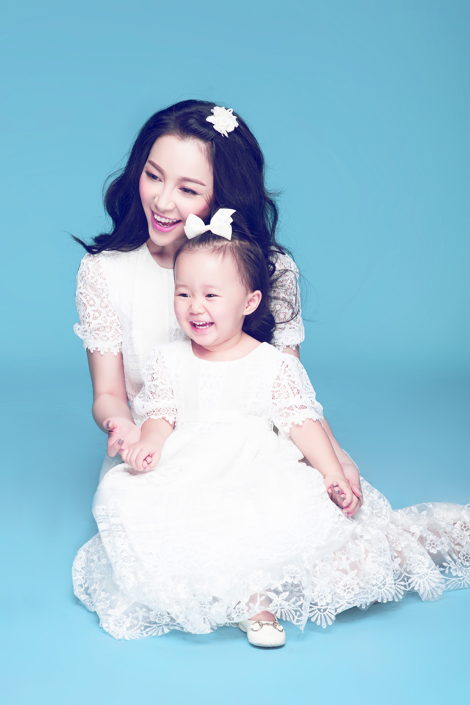 | Bé Linh Linh vui vẻ và hào hứng khi được chụp ảnh thời trang cùng mẹ. Cô nhóc cười hồn nhiên, vô tư trước ống kính nhiếp ảnh gia. Trang phục tông trắng tôn nét đẹp tự nhiên, đời thường của hai mẹ con. |