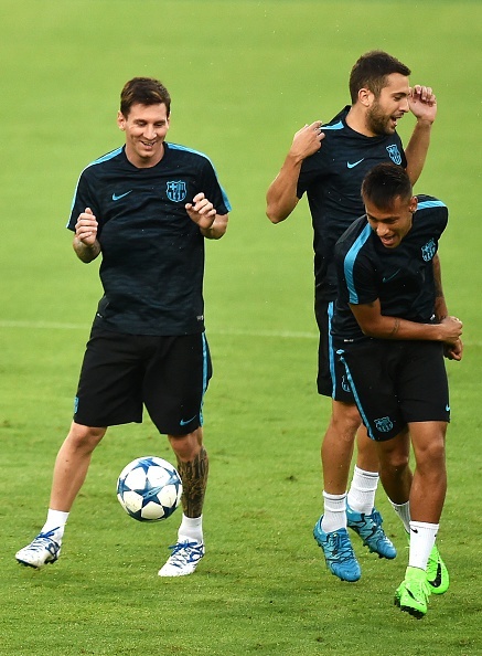 | Lionel Messi cùng Luis Suarez (trái) và Neymar (phải) tạo thành bộ ba tấn công hay nhất châu Âu mùa trước khi ghi tổng cộng 122 bàn thắng cho đội đương kim vô địch Champions League. |