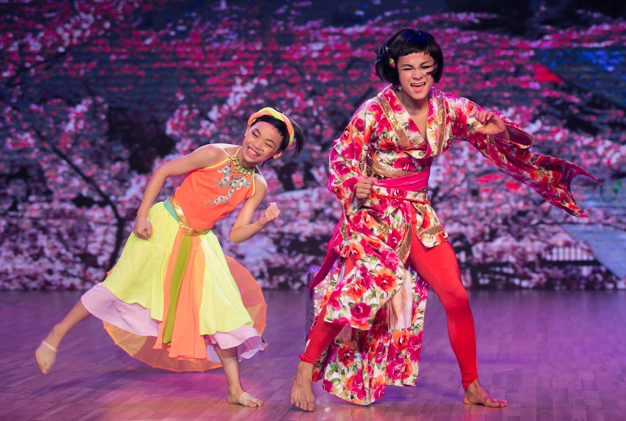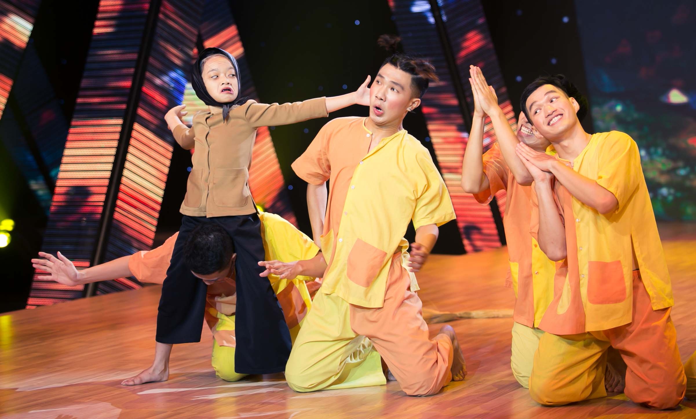 | Thí sinh Huy Nhật và Hoàng Sơn giả gái khi thể hiện phần múa dân gian Việt - Nhật kết hợp với hiphop trên nền nhạc Tokyo Drift , Son. Vì phần trình diễn của hai em quá tốt nên ban giám khảo chỉ chia sẻ đơn giản: "Hoàng Sơn và Huy Nhật diễn quá xuất sắc". |