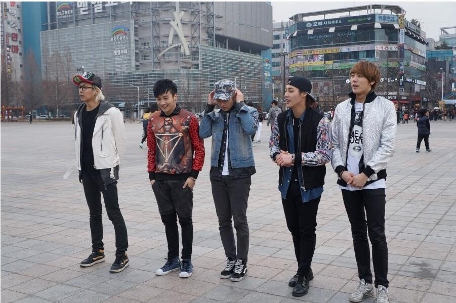 | Các thành viên từ trái qua: Prince Mac, San Chung, Eddie, LeeKoo và Simba. Ảnh: daum cafe |