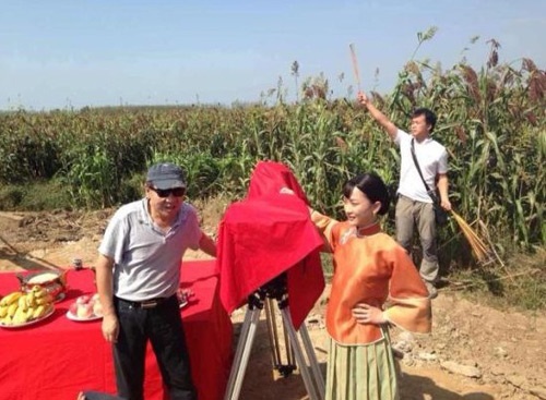 | Châu Tấn trên phim trường bộ phim truyền hình Cao lương đỏ. |