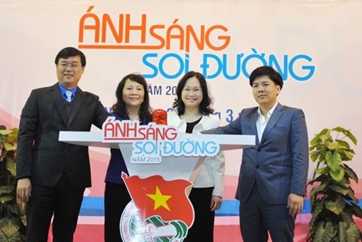 | Anh Lê Quốc Phong - Bí thư TƯ Đoàn, Chủ tịch Hội Sinh viên Việt Nam, chị Lâm Phương Thanh, Phó Trưởng Ban Tuyên giáo TƯ Đảng, anh Nguyễn Ngọc Thủy - Chủ tịch HĐQT Công ty Egame (từ trái sang phải) khai mạc hội thi tại Đại học Kinh tế Quốc dân Hà Nội. |