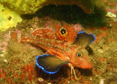 | Cận cảnh con cá chào mào Red Gurnard dưới đáy biển. Ảnh: Fishindex. |