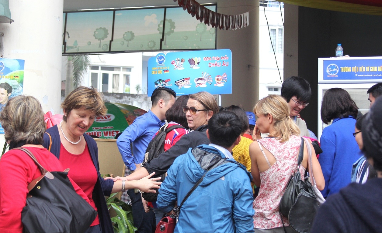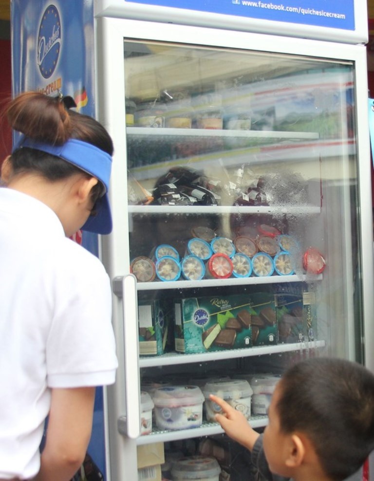 Khu vực gian hàng kem Quiche là quầy hàng đông khách nhất trong các gian hàng ẩm thực của lễ hội Đức Deutschlandfest 2015 vừa diễn ra ở triển lãm Hoa Lư. Nhiều khách nước ngoài cũng hào hứng xếp hàng để mua được loại kem yêu thích từ đất nước của họ.