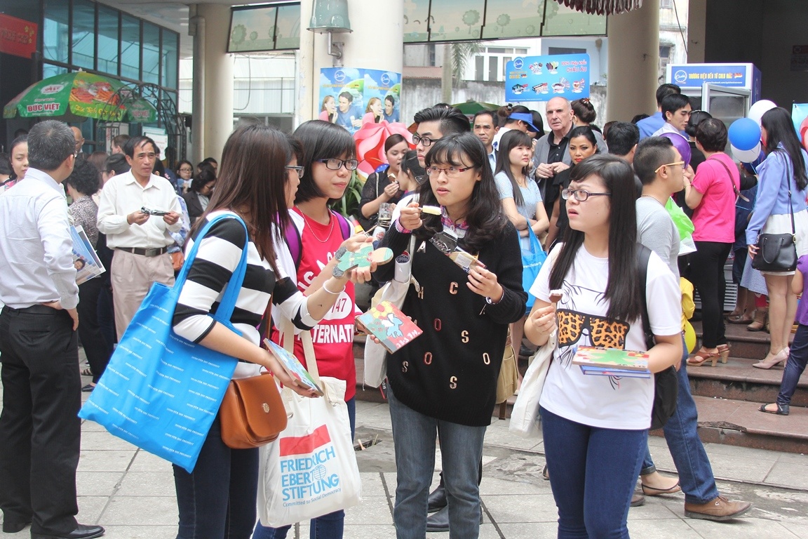 | Các bạn trẻ đến từ Đức vui thích khi thưởng thức kem Quiches. |