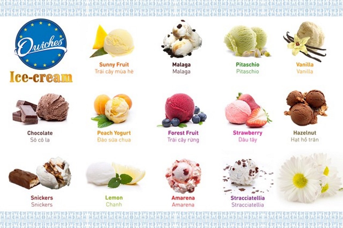 Quiches được sản xuất theo tiêu chuẩn chất lượng châu Âu từ những nguyên liệu cao cấp, sữa tươi nguyên chất và các nguyên liệu tự nhiên khác, nhâp khẩu 100% theo quy trình vận chuyển, bảo quản chuẩn quốc tế nên đem đến hương vị ngon lành như vừa xuất xưởng. Ngoài ra, chủng loại kem rất đa dạng từ ốc quế, kem que, kem cup 110 ml có sẵn thìa để phục vụ việc dùng ngay tại chỗ hay mang đi, kem 500 ml với lớp sốt đặc biệt, các loại kem hộp cỡ lớn 900 ml cho gia đình, nhóm bạn và cả dòng kem đặc biệt cho nhà hàng khách sạn.