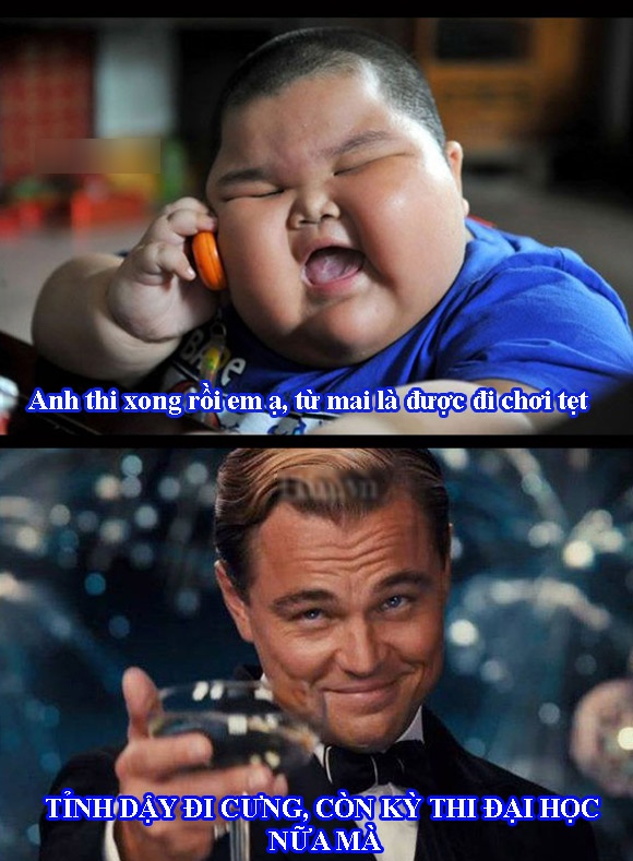 | Ngày 4/7, buổi thi đầu tiên trong kỳ tuyển sinh đại học 2014 đã bắt đầu, trong khi các sĩ tử hồi hộp chờ đợi giây phút công bố đề thi năm nay thì trên mạng xã hội, nhiều bạn trẻ tích cực truyền tay những bức ảnh chế với nội dung thi ĐH hài hước cùng lời chúc thi tốt đẹp đến các sĩ tử sinh năm 96. |