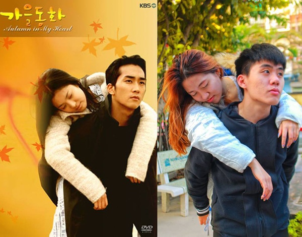 | Loạt ảnh chế thú vị này nằm trong vòng loại của Reposter do câu lạc bộ Khám phá Hàn Quốc (KDC) - ĐH Ngoại thương Hà Nội tổ chức. Người tham gia cuộc thi sẽ chụp một tấm ảnh giống hệt poster phim điện ảnh hay truyền hình Hàn Quốc từng được yêu thích. Poster phim Miss Cherry's Love Puzzle được nhóm Sô Ây đầu tư. |