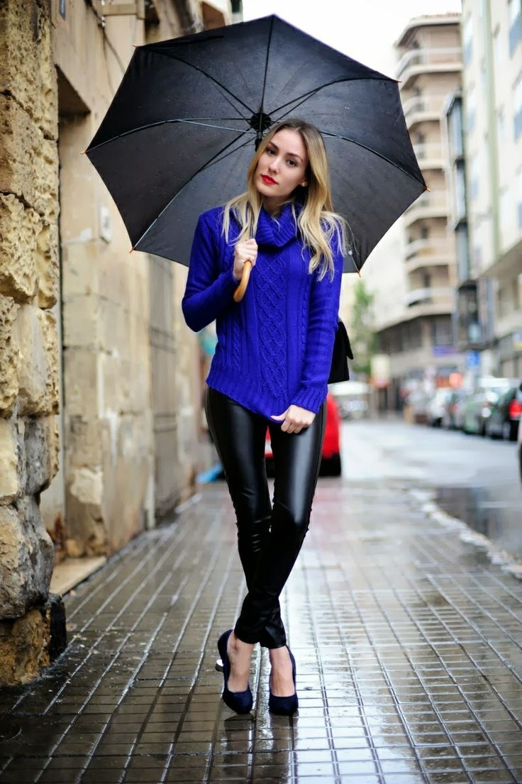 | Gợi ý đơn giản mà không kém phần ấn tượng với áo len và quần da. |