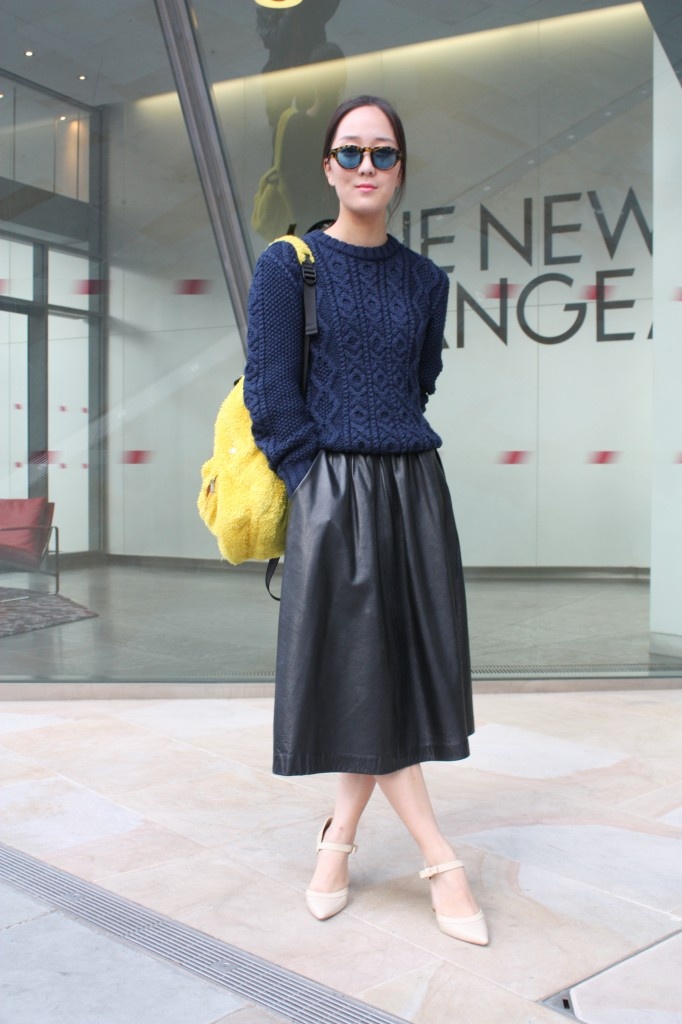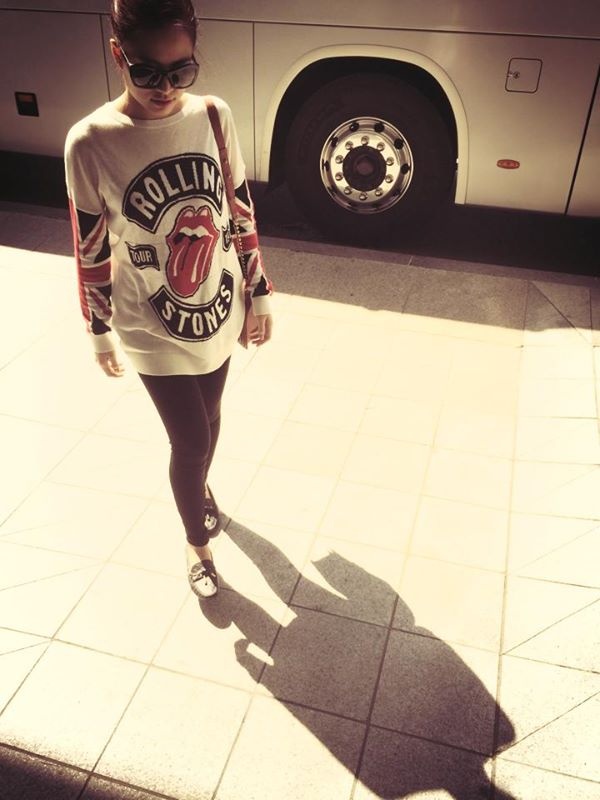 | Cô cũng nhanh chóng cập nhật các mẫu mốt áo len họa tiết khi xuống phố. |