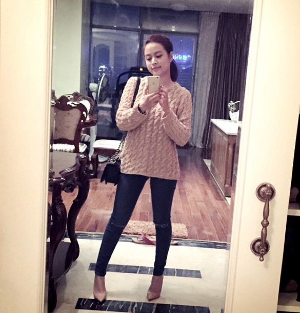 | Áo len vặn thừng mix kèm quần skinny là phong cách thời trang rất ưa thích của Hoàng Thùy Linh. |