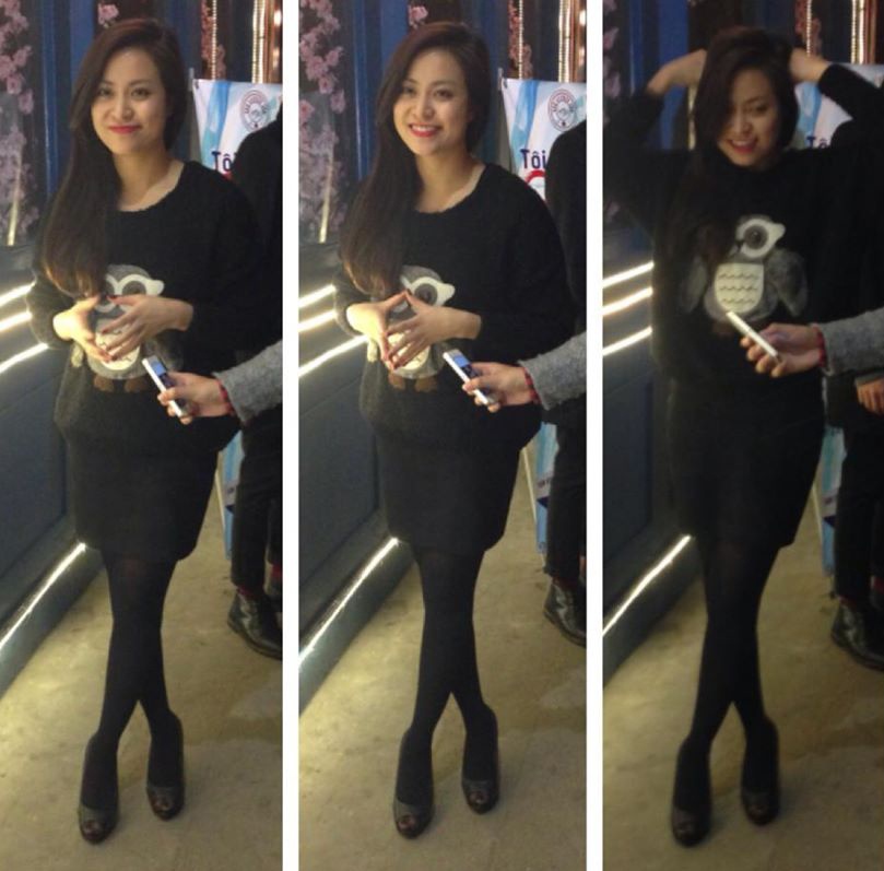 | Hình ảnh Hoàng Thùy Linh trong một buổi họp báo hết sức đáng yêu với áo len in hình họa tiết cú dễ thương. |