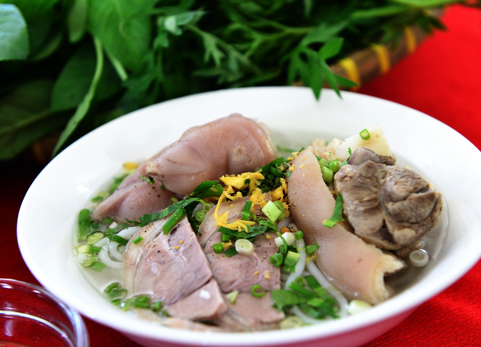 Đến Trảng Bàng, Tây Ninh, nhiều du khách không thể bỏ qua đặc sản bánh canh hấp dẫn ở đây. Món ăn có những sợi bánh canh trắng ngần, không bở nát, kết hợp cùng nước dùng ngọt thanh, thêm những khoanh móng giò heo giòn giòn sựt sựt hấp dẫn... Ảnh: Lê Quân. |