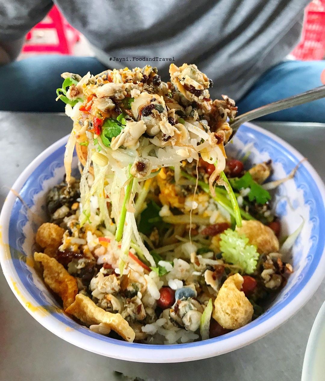 Cơm hến Hoa Đông là một trong những địa chỉ lâu đời ở Huế. Một tô đầy đặn bao gồm hến, bánh tráng, bì heo, lạc giã, vừng rang, tóp mỡ và mắm ruộc chắc hẳn sẽ thỏa mãn tâm hồn ăn uống của hội "cú đêm". Cơm hến mang vị cay xộc lên mũi thường được ăn kèm với rau sống. Bạn cũng đừng quên húp bát nước hến nóng hổi và cảm nhận vị ngon dân dã của món ăn này. Giờ mở cửa: 7h-22h. Địa chỉ: Ưng Bình. Ảnh: Mofoodie97, jayni.foodandtraveling. |