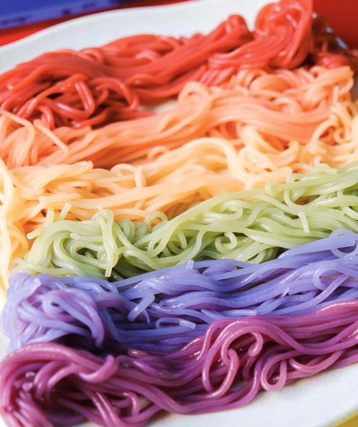 Lẩu cầu vồng gây ấn tượng với tín đồ ẩm thực bởi phần bún 6 màu bắt mắt. Quán bún đường Nguyễn Trọng Tuyển, quận Phú Nhuận, là tọa độ để bạn thưởng thức phiên bản ẩm thực hấp dẫn này. Thực khách có thể chọn nước dùng vị chua cay hay thanh ngọt. Ảnh: Canquetsaigon. |