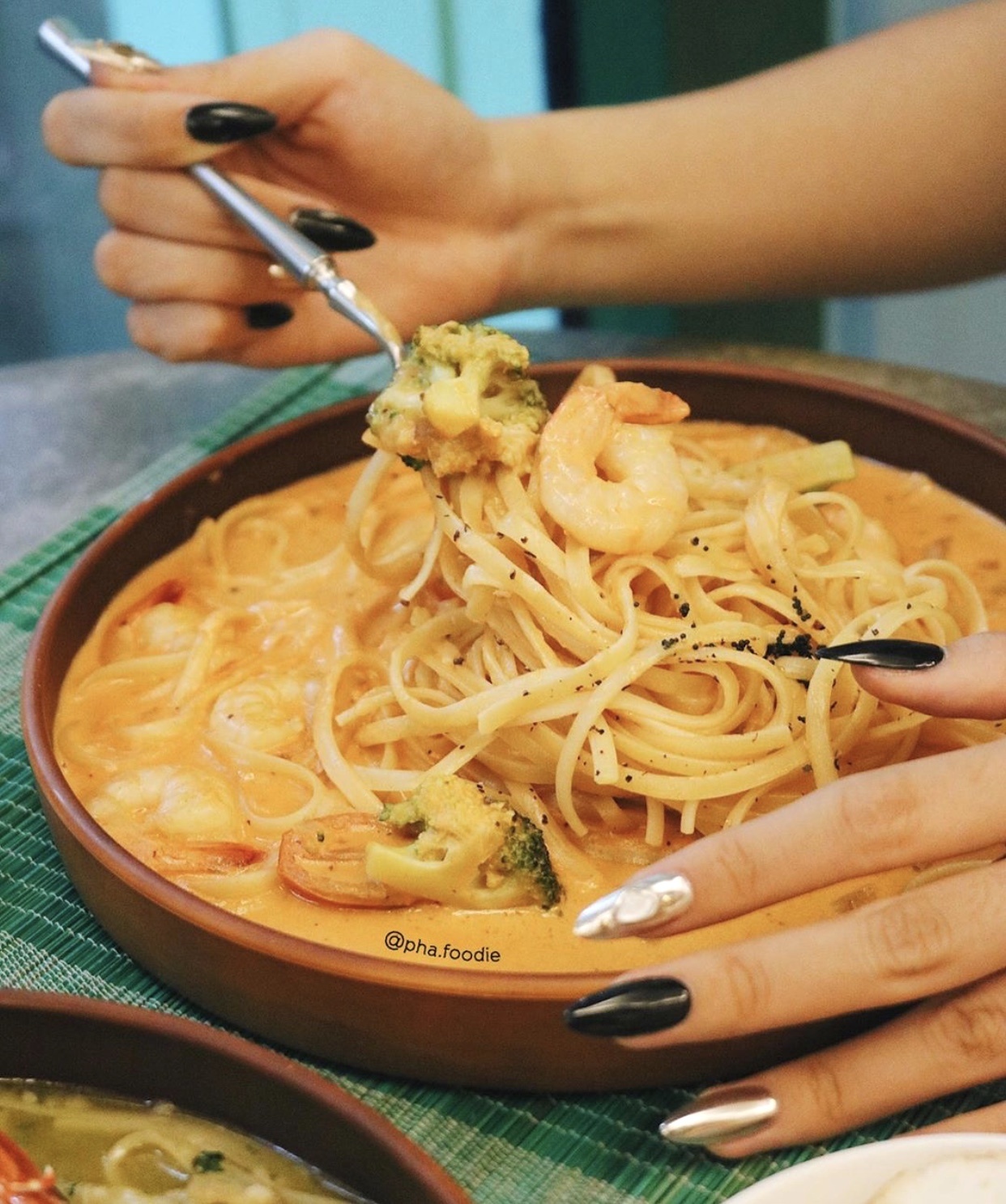 | Pasta kết hợp hải sản cũng là gợi ý thú vị cho những tín đồ ẩm thực. The 70m là nơi bạn có thể trải nghiệm pasta chuẩn vị Hàn Quốc. Món ăn được trình bày bắt mắt, nổi bật với sợi mì dai, mềm vừa phải. Sốt cà, tôm, ghẹ, vẹm, nghêu là những yếu tố tạo hương vị hấp dẫn khiến bạn tan chảy vị giác. Ảnh: Aiimyyy, Pha.foodie. |