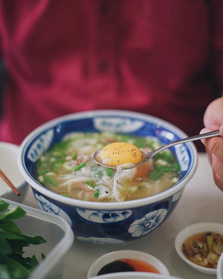 | Bánh canh xá xíu trứng lòng đào - 134/41 Lý Chính Thắng, quận 3: Bánh canh tại đây có nước dùng ngọt thanh. Bạn có thể lựa chọn bột lọc hoặc bột gạo để thưởng thức. Tô bánh canh hấp dẫn với sự quyện hòa của tóp mỡ và trứng lòng đào béo ngậy. Một phần có giá 36.000 đồng. Tiệm mở cửa từ 6h-21h nên thuận tiện cho bạn thỏa mãn vị giác giữa tiết trời se lạnh. Ảnh: Hukhafoodaholic. |