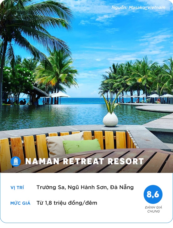 Naman Retreat Đà Nẵng 2 lần được World Travel Awards trao tặng danh hiệu "Khu nghỉ dưỡng hàng đầu châu Á". Nơi đây sở hữu 113 biệt thự và phòng khách sạn tiêu chuẩn 5 sao. Điểm khác biệt của resort là việc phát triển lĩnh vực chăm sóc sức khỏe nghỉ dưỡng với các gói dịch vụ hành trình Detox từ 3-14 ngày.
