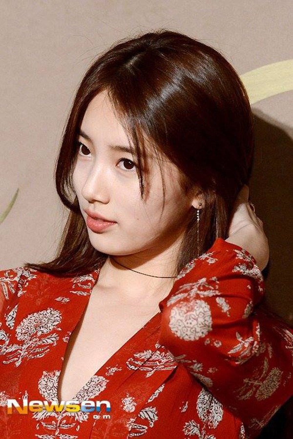 | Suzy khéo léo sử dụng choker mảnh cùng chiếc váy đỏ khoét sâu. |
