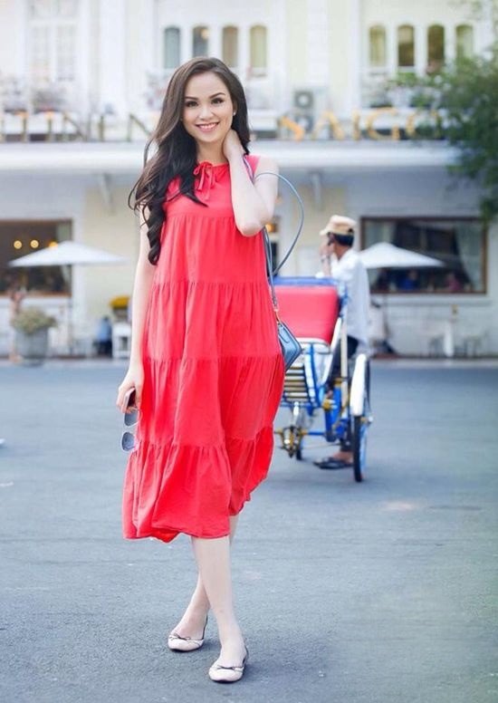 | Một trong những mẫu đầm chuông của cô được rất nhiều bà bầu ưa thích. |