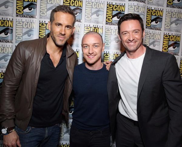 | Ryan Reynolds, James McAvoy và Hugh Jackman tại sự kiện Comic-Con 2015. |