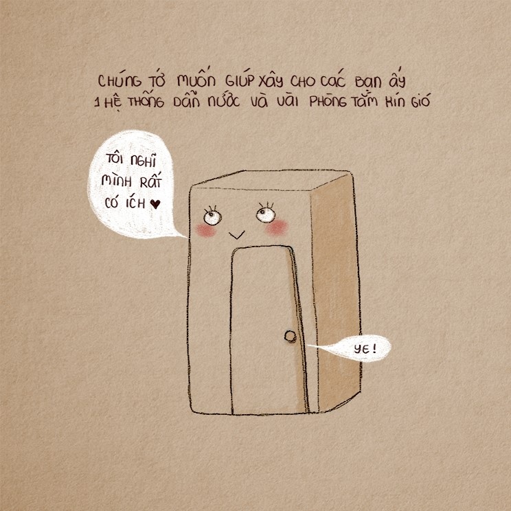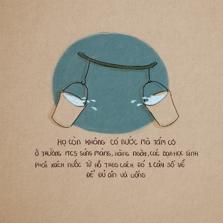 | Và điều ý nghĩa nhất Kawa Chan muốn gửi gắm qua bộ tranh của mình chính là lời kêu gọi mọi người cùng chung tay để xây dựng một hệ thống dẫn nước và vài phòng tắm kín gió cho trẻ em vùng cao. |