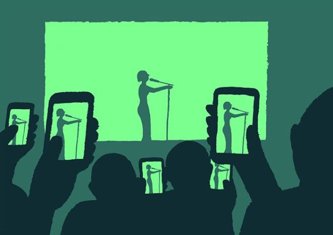 | Cách tận hưởng một buổi hòa nhạc qua màn hình smartphone. |