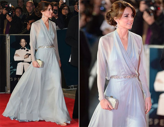 Kate Middleton được biết đến với vai trò là Công nương nước Anh, vợ của Hoàng tử William. Cô sở hữu dáng người cao ráo, gương mặt sang trọng và gu thời trang thanh lịch, đẳng cấp. Xuất hiện trong buổi công chiếu bộ phim Spectre diễn ra tại Royal Albert Hall, London ngày 29/10 vừa qua, công nương Anh đẹp dịu dàng trên thảm đỏ trong bộ váy Jenny Packham và sandals Jimmy Choo.