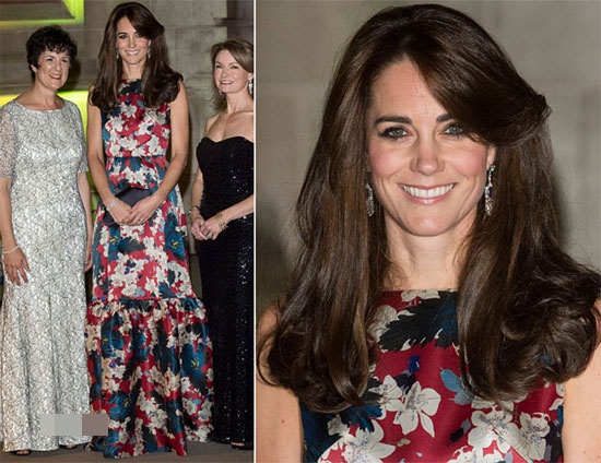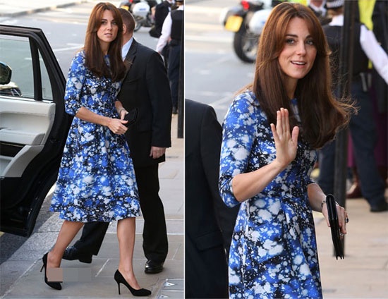 Những bộ váy hàng hiệu Jenny Packham, Tabitha Webb, Alexander McQueen... đều có trong tủ đồ của cô. Diện bộ váy dài họa tiết hoa văn sặc sỡ của hiệu Erdem, vợ của Hoàng tử William tự tin khoe dáng sau sinh tới tham dự sự kiện từ thiện 100 Women in Hedge Funds diễn ra tại Victoria & Albert Museum, London.