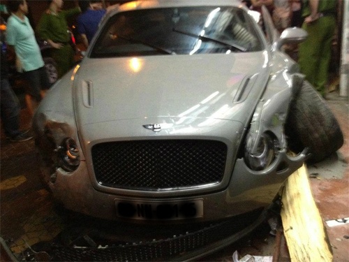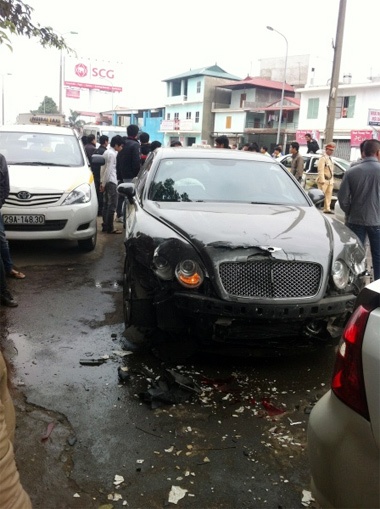 Chiếc Bentley Continental Flying Spur gặp tai nạn trên đường 5, đoạn qua Hải Dương hồi tháng 12/2011. Theo các nhân chứng, chiếc xe siêu sang đâm vào xe Kia Morning đi phía trước rồi va vào lan can giữa đường khiến phần đầu hư hại nặng với nắp ca-pô bị cong, lưới tản nhiệt rơi.