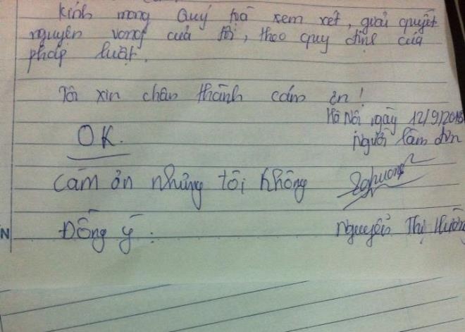 Mặc dù nội dung của lá đơn không được ghi lại cụ thể nhưng chỉ với dòng chữ ký "bá đạo" của người chồng - "ok, cảm ơn nhưng tôi không đồng ý" cũng đủ khiến dân mạng thích thú và không ngừng chia sẻ. Không chỉ thế, chính những dòng chú thích chi tiết, không kém phần dí dỏm kèm theo của cô vợ về nguyên nhân viết đơn mới là yếu tố hút sự quan tâm của mọi người.