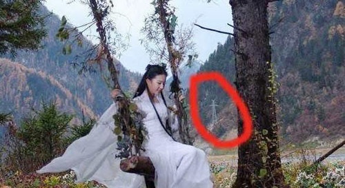 | Nhiều khán giả đùa, nếu biết thời đó đã có cột điện thì nàng Tiểu Long Nữ trong Thần điêu đại hiệp 2006 do Lưu Diệc Phi đóng không phải bắt Dương Quá thắt dây rừng làm xích đu. |
